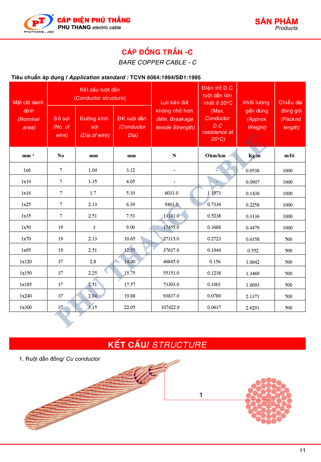 Cáp đồng trần C được áp dụng theo tiêu chuẩn: