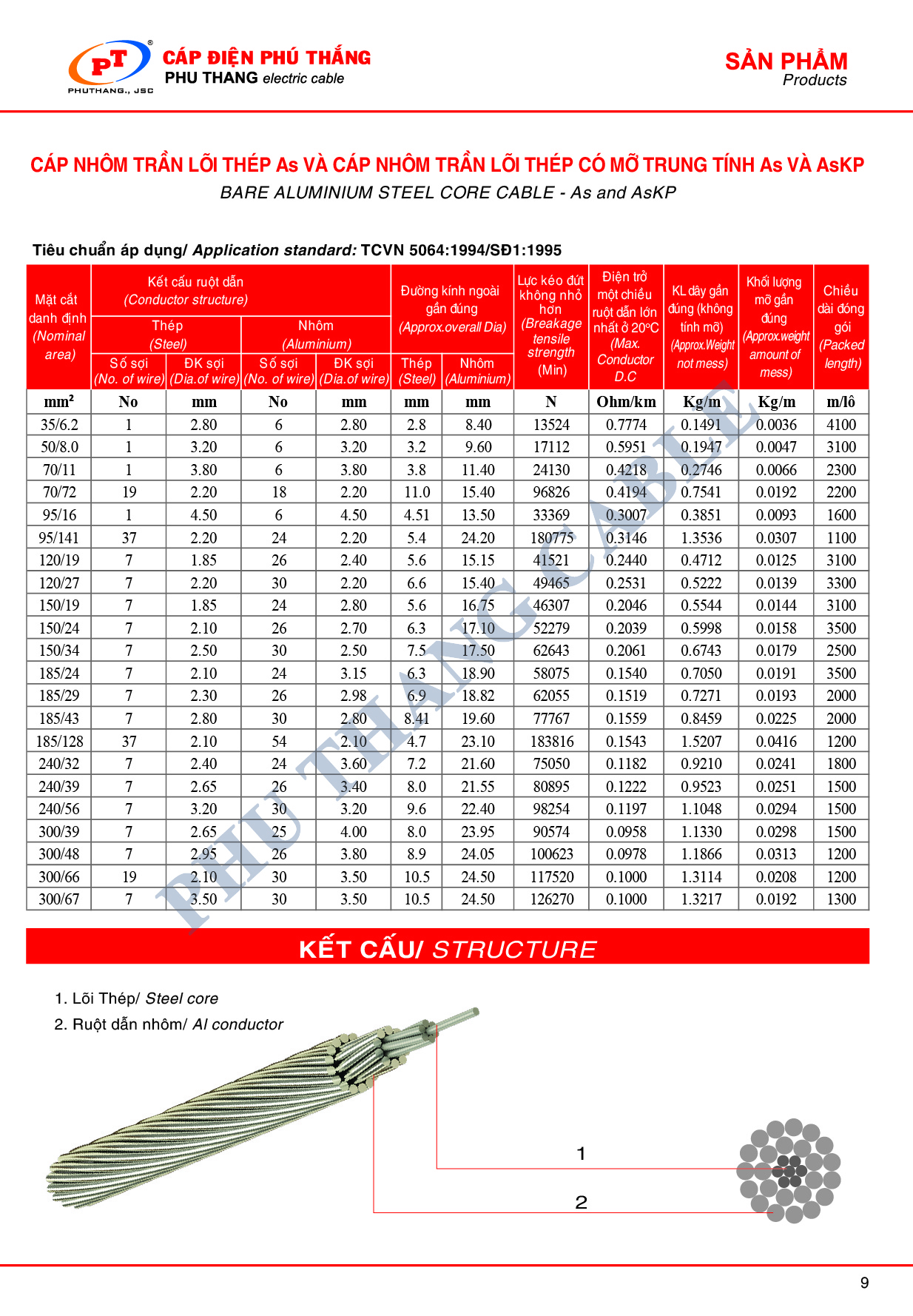 Cáp nhôm trần As không bôi mỡ được sản xuất trên dây chuyền tiên tiến hiện đại của công ty Phú Thắng, có thể sản xuất theo yêu cầu của khách hàng.